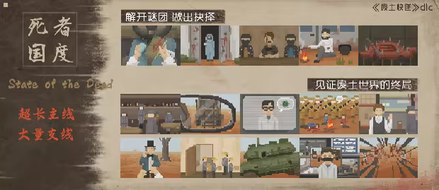 在《死者国度》dlc中,玩家可以经由地铁口在地上和地下两个世界中探索和冒险。地下有着规模更大的地图,死者国度比没落平原的世界更加广阔,也有着数量更多的城镇。