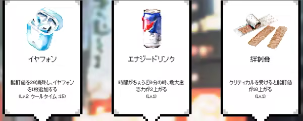 カードのタイプについて、攻撃をするダメージカード(精神的な攻撃)、回復をするアイテムカード、ダメージを免除するギアカードや様々な効果を持つエフェクトカード等があります。合理的な順番でカードをクリックするのがクリアのカギです。