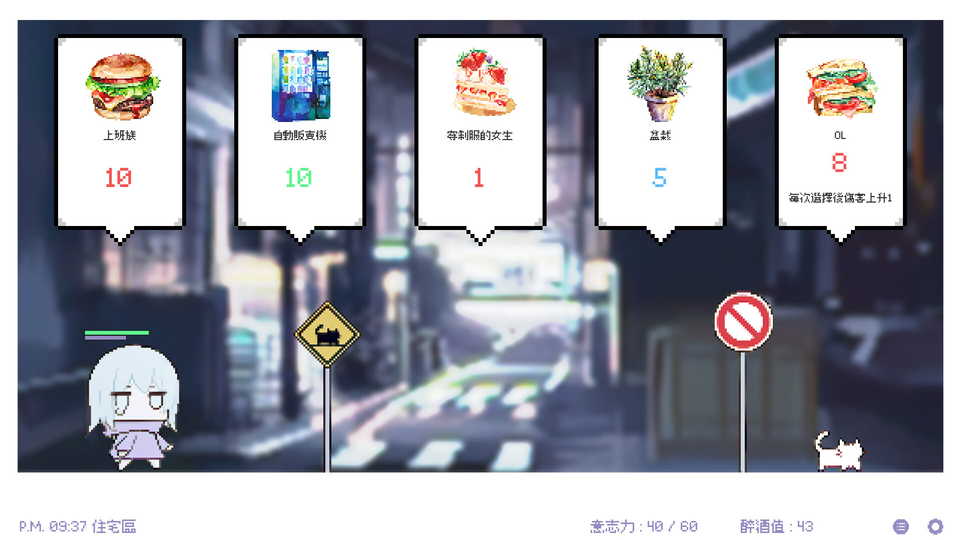 少女在午夜的街頭裡追尋著逃走的貓咪。《白夜夢》是一款卡牌策略Rougelite遊戲。遊戲通過簡單的翻牌機制與趣味豐富的Build組合,巧妙地模擬了這短暫又漫長的一夜。