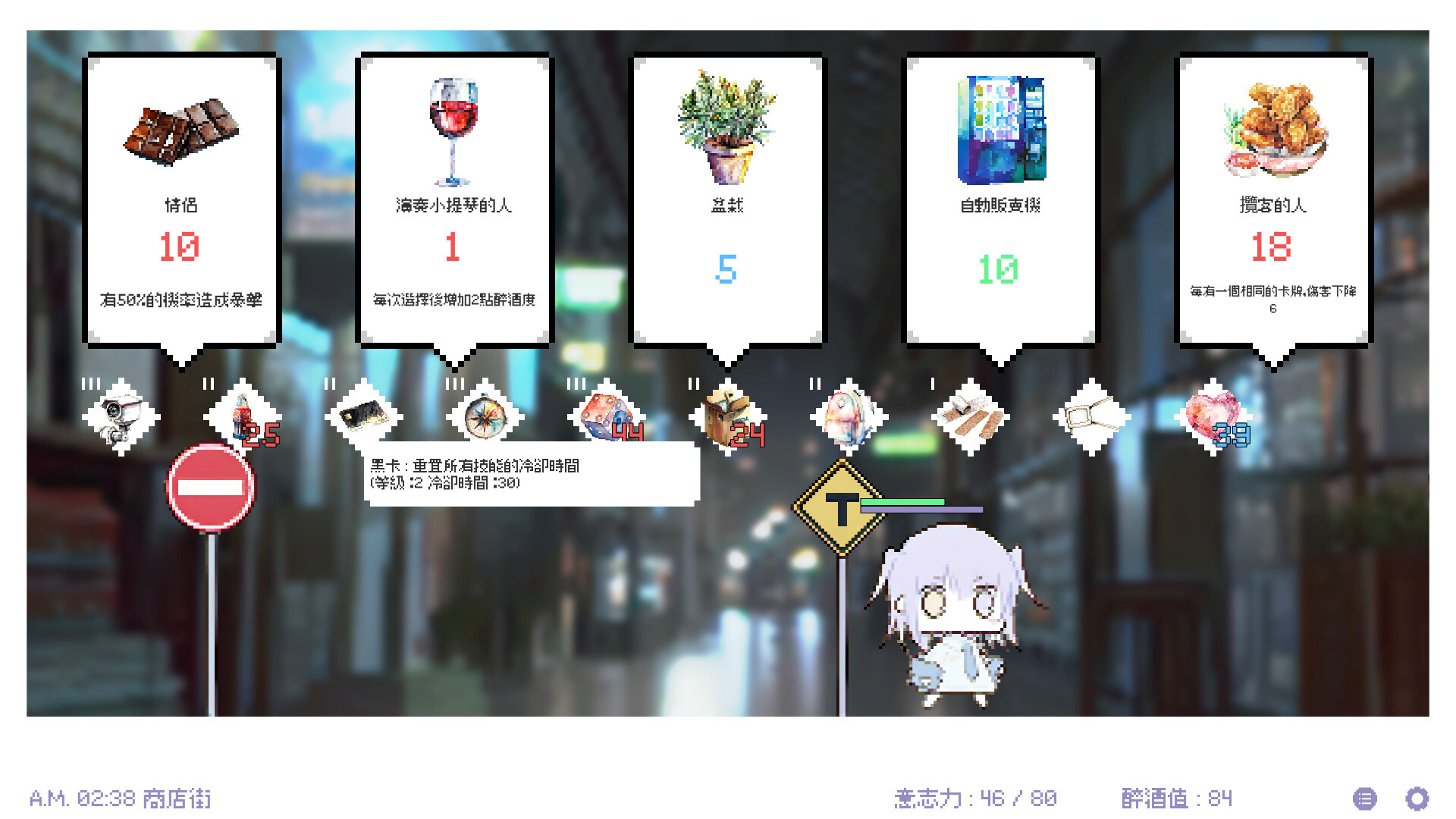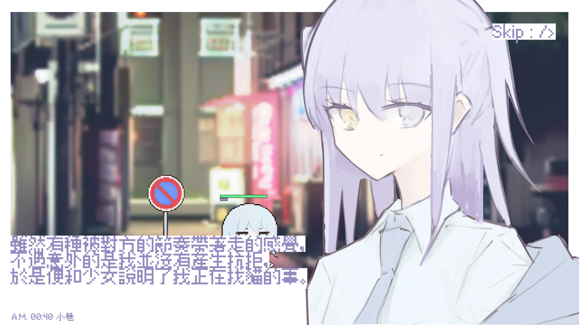 少女在午夜的街頭裡追尋著逃走的貓咪。《白夜夢》是一款卡牌策略Rougelite遊戲。遊戲通過簡單的翻牌機制與趣味豐富的Build組合,巧妙地模擬了這短暫又漫長的一夜。