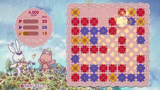 “パステルカラーのビジュアルと、ピアノのBGMに癒されます。キャラクターたちのボイスも、幼い感じが愛らしいですね。刺繍のお花をモチーフにしたパズルは“落ちもの”スタイルですが、消すと残りのパネルが左下に寄せられていくのが珍しい。ストーリーモードはやさしめですが、パズルのみを遊ぶモードの高難易度は、なかなかのボリュームと歯応えがあります。キッズだけでなく大人もハマれる1本。”