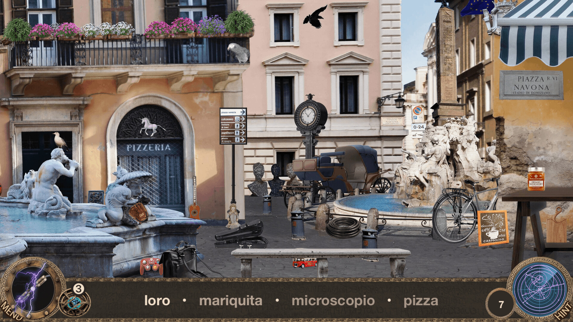 ¡Resuelve el misterio de la enigmática máquina del tiempo! En este juego de Objetos Ocultos irás a dar un paseo por Roma para buscar el secreto del Chronovisor y salvar a los héroes que han caído en una trampa. Harás increíbles descubrimientos en tu camino!