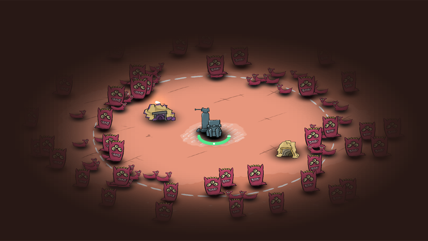this is a tower defence game,we need upgrade our weapons to fight waves of enemies,robots can mining diamonds,and we need spent those in many aspect,features of this game: 1 return back before dager comes,2tempory upgrade are important but permanent upgrade are better