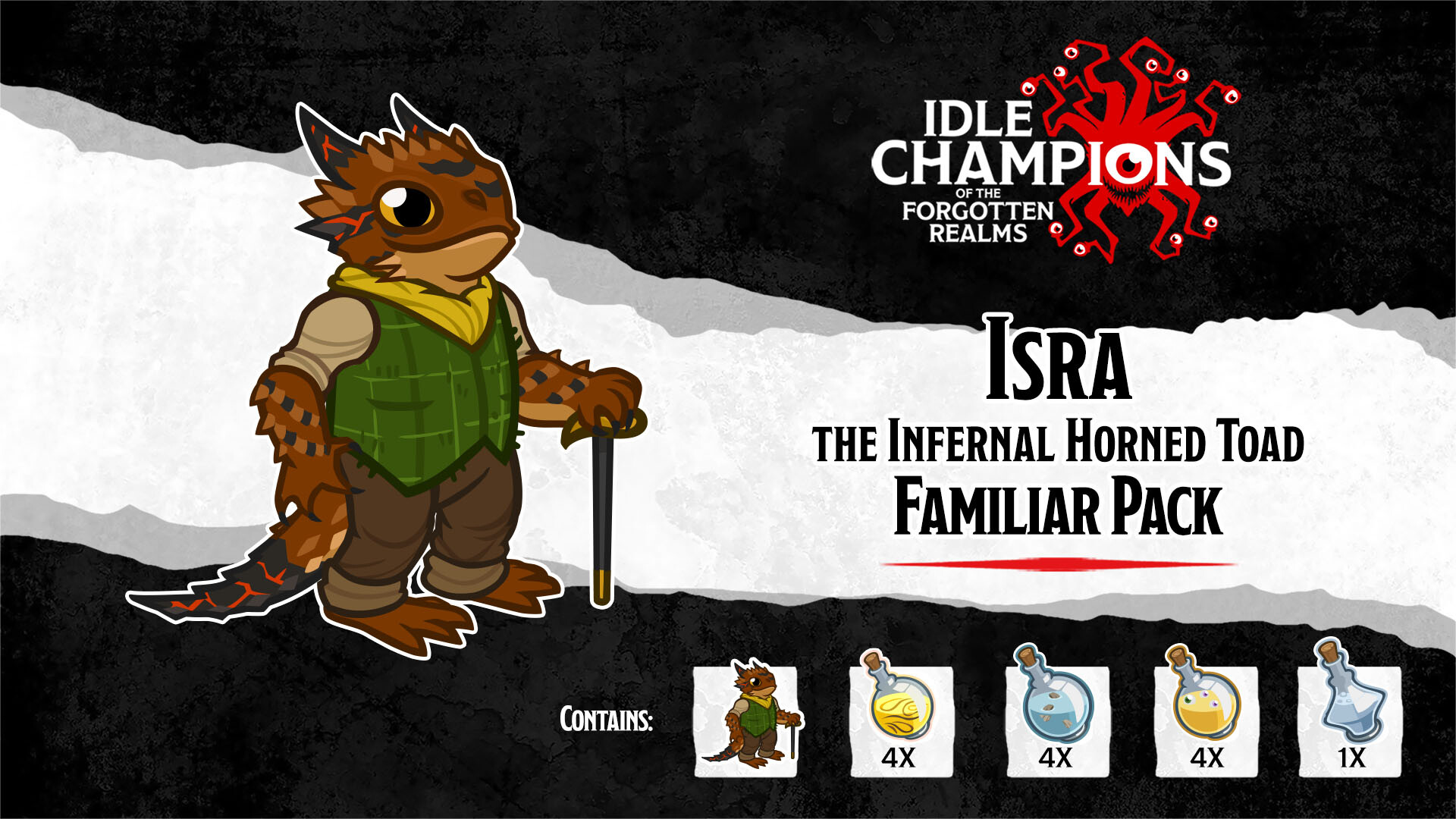 Notice: Idle Champions - Isra the Infernal Horned Toad Familiar Pack is no longer available on the Steam store.