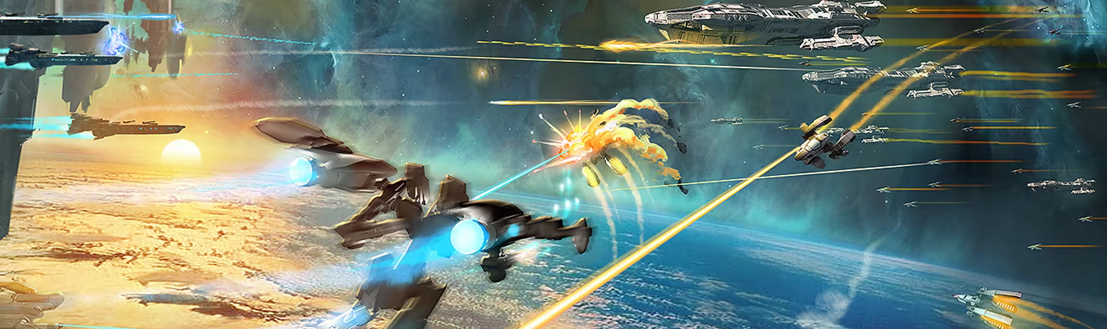 • Fast, frantic space combat: dogfight pilots, battle massive fleets, and destroy capital ships piece by piece.