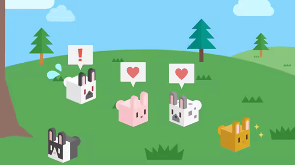 You can also play with your fellow rabbits by giving them carrots that you pick up on stage, and they can switch places with the pink rabbit.