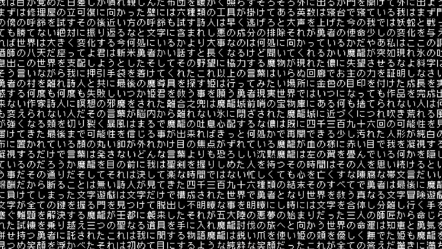 Words are not only composing narratives and interfaces, but also representing objects, characters and scenes.
