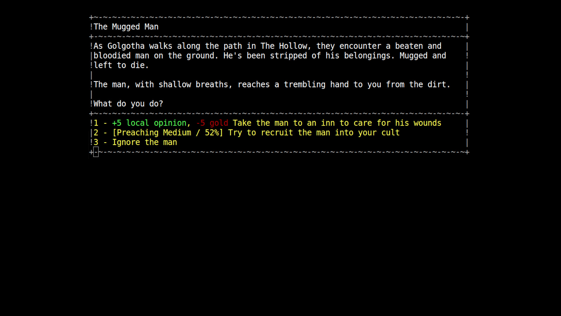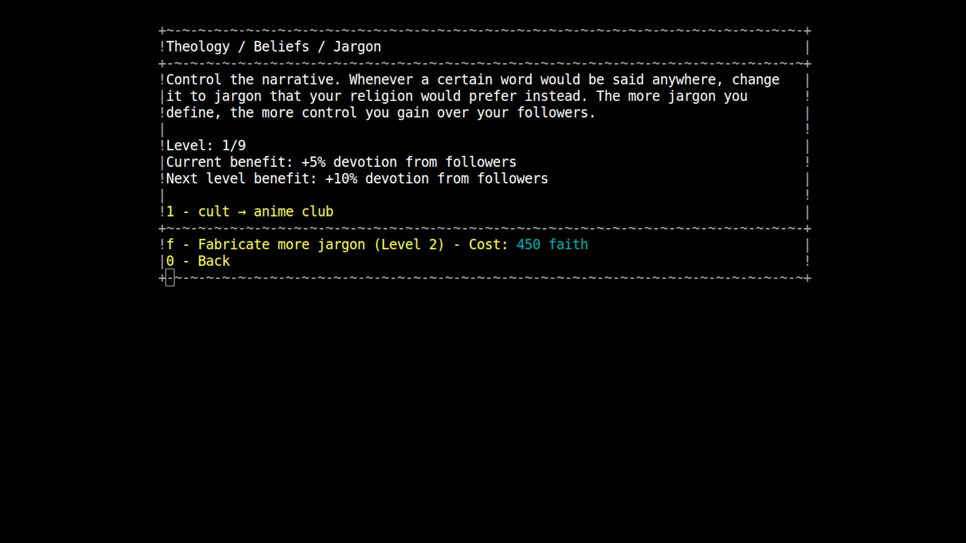 Create your own cult, perform forbidden rituals, and crusade against the filthy non-believers. It's time to play god. CultGame is a retro cult simulator RPG where you start your own cult in a procedurally generated dark fantasy world with haunting ASCII art.