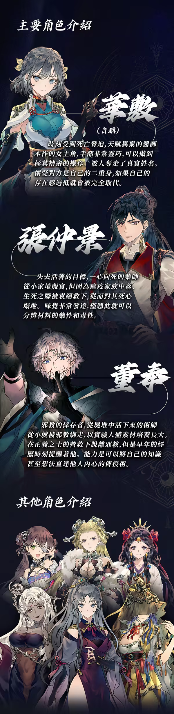 在東漢末年,神秘的疾病席捲神州,導致不斷的災禍與戰爭。對於許多人來說,死亡或許只是一種解脫。堅稱自己是真正華佗的少女、心懷死亡願望的當世名醫張仲景,以及編寫了《青囊書》與《傷寒雜病論》的醫學大師董奉,三位背景迥異的人,因緣際會走上了這段亂世旅途,命運由此緊密交織。經歷了無數的悲痛與犧牲,他們能否克服重重困難,找到真相,終結一切災難的罪魁禍首?