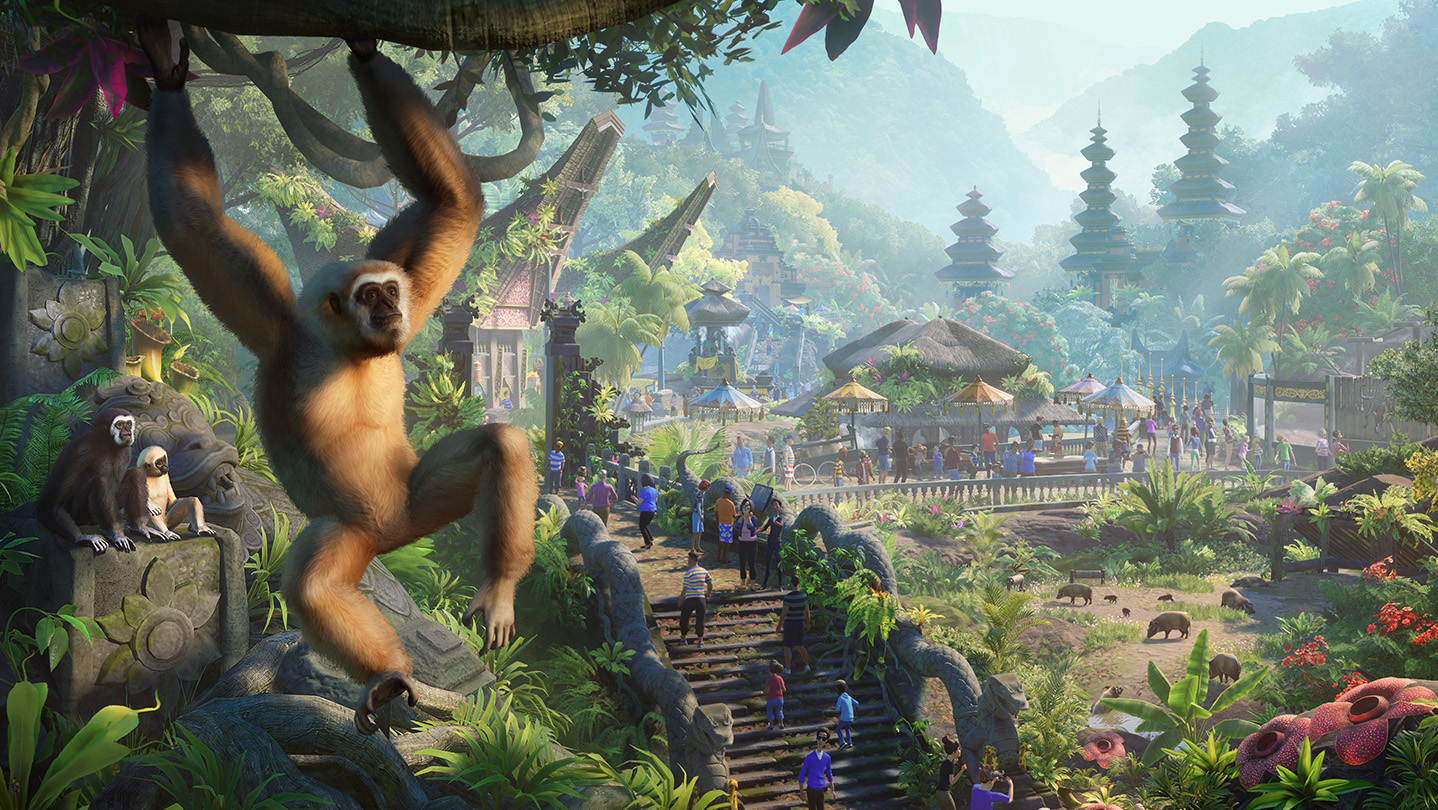 Give a warm welcome to the Planet Zoo: Tropical Pack! Adopt and care for five incredible new animals commonly found in tropical rainforests around the world, including Africa, Southeast Asia and South America. Some of these species live high up in the canopy, others along fertile riverbanks, but all have evolved to flourish remarkably in jungle biomes. In addition, expand your dream zoo even further with 200+ detailed new scenery pieces celebrating the beauty of traditional Indonesian architecture, and take on an exciting new campaign scenario set in a lush green Indonesian locale.