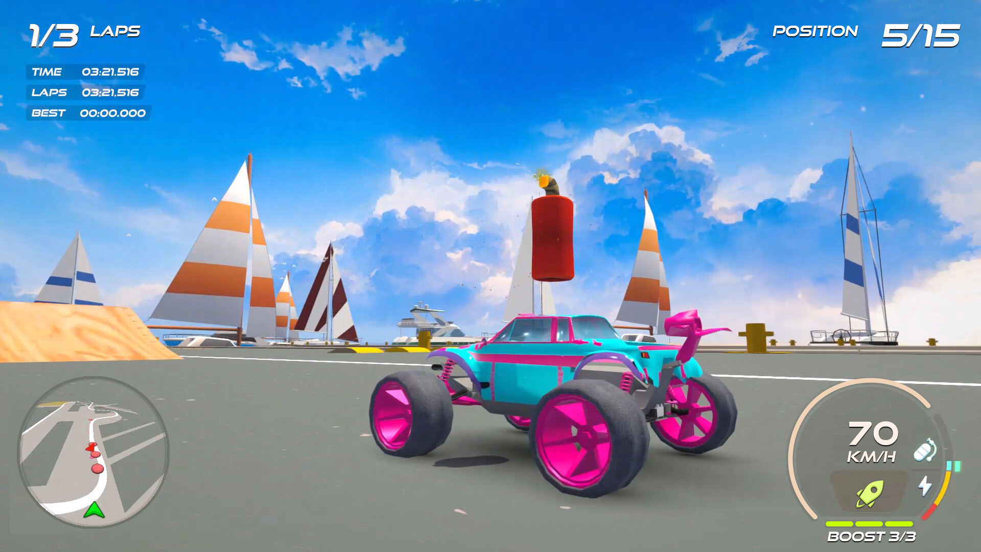 The fun doesn’t stop at just racing! Unleash your creativity with our intuitive and customizable track builder. Design your own tracks, complete with clever obstacles and hazards. Set up your own championship events using our championship editor, adding to the replayability and competitive spirit of the game.