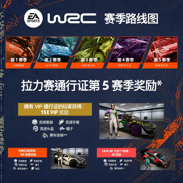 注意: 《EA SPORTS™ WRC》第 5 赛季 VIP 拉力赛通行证 已在 Steam 停售。