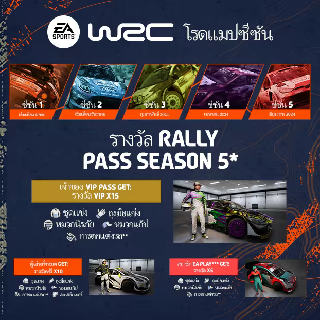 หมายเหตุ: ร้านค้า Steam ไม่มี EA SPORTS™ WRC Season 5 VIP Rally Pass อีกต่อไปแล้ว