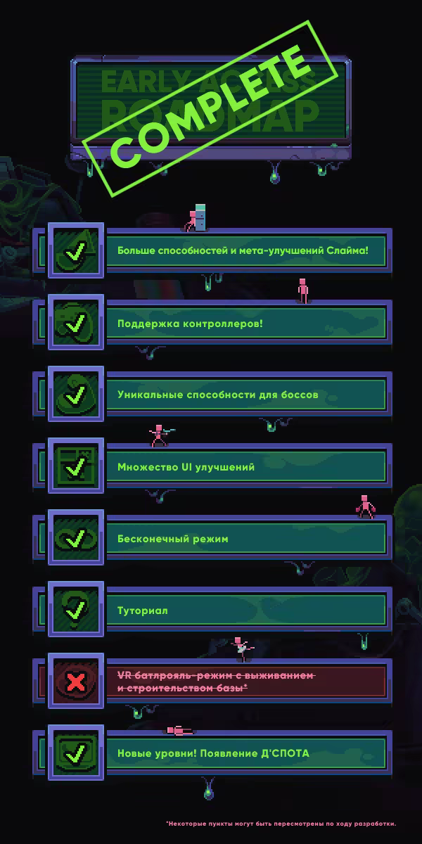 Добро пожаловать в Slime 3K — bullet-heaven рогалик во вселенной Despot’s Game! Собирайте уникальную колоду из множества способностей, прокачивайтесь и уничтожайте орды жалких человеков на пути из смерти, жестокости и брецелей.