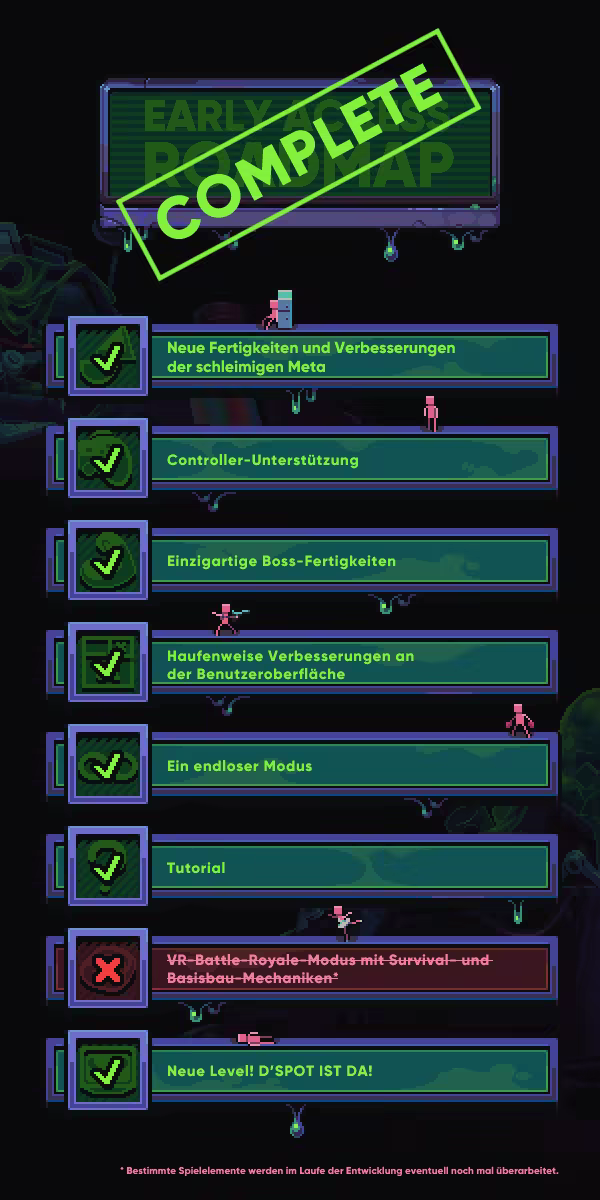 Der Glibberschleim, aus dem künstliche Menschen erschaffen werden, hat sich verselbstständigt und sich gegen seinen Schöpfer erhoben – eine böse KI, die (leider) im Jahr 3000 die Welt beherrscht! Werde in diesem actiongeladenen Roguelite von den Entwicklern von „Despot’s Game“ und „Despotism 3K“ zum mörderischen Glibber und bahne dir deinen Weg mit Tod, Verderben und Brezeln. Wir haben einfach versucht, Erfolgstitel wie „Vampire Survivors“, „Hall of Torment“, „Brotato“, „Soulstone Survivors“ und „20 Minutes Till Dawn“ zu kopieren, aber unsere verrückten Experimente sind aus dem Ruder gelaufen. Indem wir das beliebte Spielkonzept um einen Laden wie in „AutoChess“ und das Deckbuilding aus Kartensammelspielen erweitert haben, haben wir das perfekte Monster erschaffen: Slime 3K.