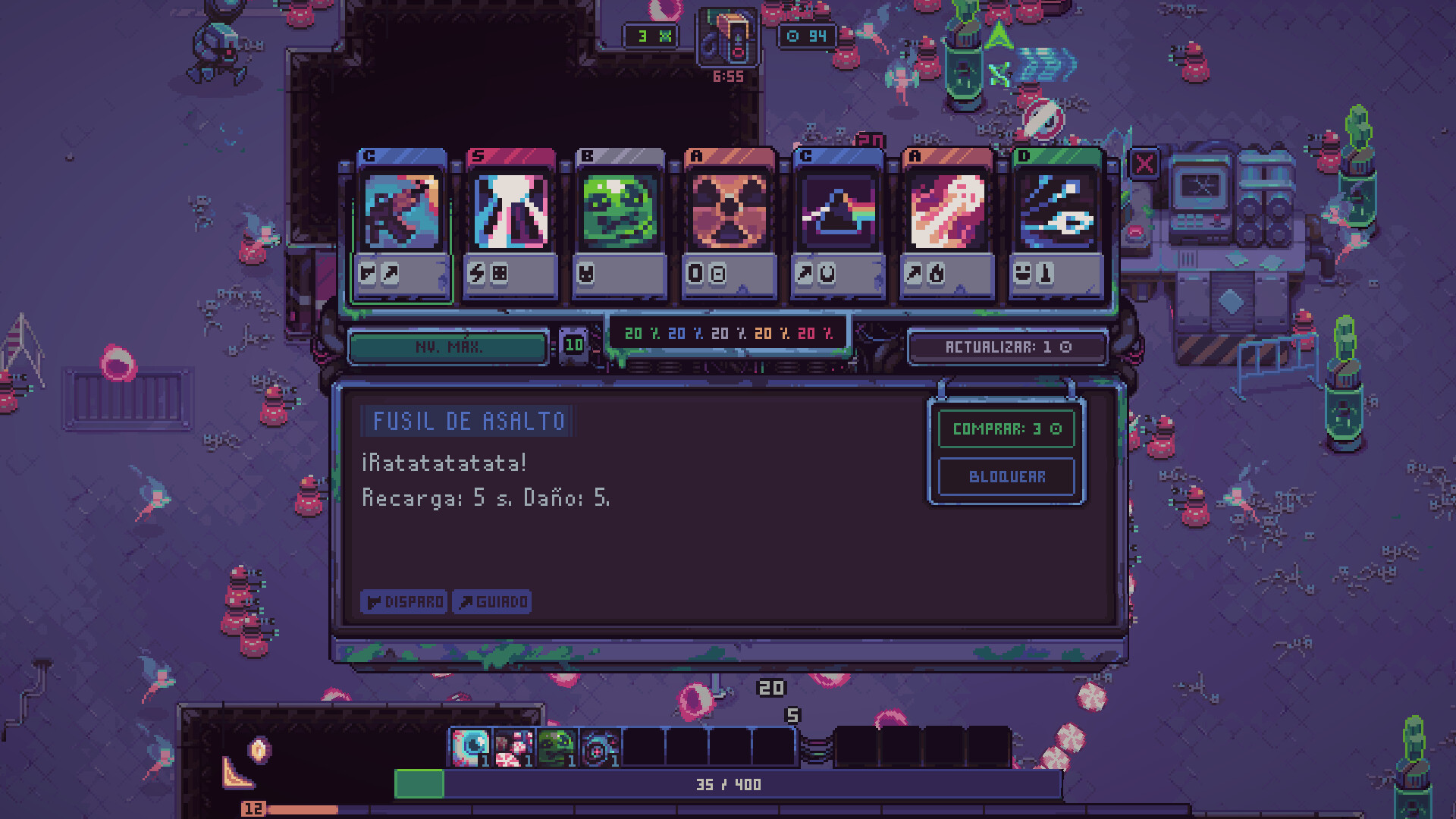 La masa gelatinosa que se usó para crear humanos artificiales ha adquirido consciencia y se ha revelado contra su creador: el Déspota, una IA malvada que controla el mundo en el año 3000. Disfruta de violencia, muerte... y lacitos salados en este juego de acción desenfrenada de los creadores de Despot's Game y Despotism 3K. Nos hemos copiado de títulos como Vampire Survivors, Halls of Torment, Brotato, Soulstone Survivors y 20 Minutes Till Dawn, pero nos hemos pasado experimentando. Hemos añadido una tienda típica de los juegos de batalla automática y una mecánica de creación de mazos digna de un juego de cartas a una fórmula familiar. ¿Qué nos ha salido? Nuestra perfecta abominación: Slime 3K.