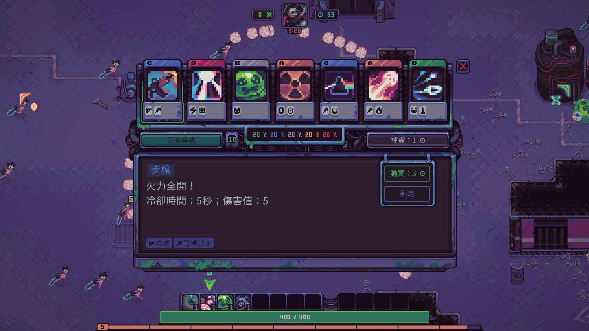 Slime 3K adds strategic depth and more creative experimentation to the survivor-like formula by introducing a deep deckbuilding system. Unlock, upgrade, mix and match your cards to stock up an impressive arsenal of zany weapons and traits. Create the perfect bloodbath loadout for each run!