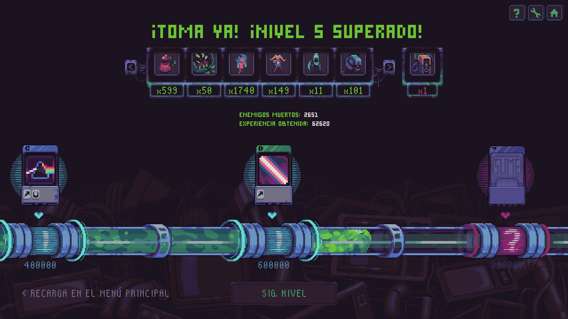 La masa gelatinosa que se usó para crear humanos artificiales ha adquirido consciencia y se ha revelado contra su creador: el Déspota, una IA malvada que controla el mundo en el año 3000. Disfruta de violencia, muerte... y lacitos salados en este juego de acción desenfrenada de los creadores de Despot's Game y Despotism 3K. Nos hemos copiado de títulos como Vampire Survivors, Halls of Torment, Brotato, Soulstone Survivors y 20 Minutes Till Dawn, pero nos hemos pasado experimentando. Hemos añadido una tienda típica de los juegos de batalla automática y una mecánica de creación de mazos digna de un juego de cartas a una fórmula familiar. ¿Qué nos ha salido? Nuestra perfecta abominación: Slime 3K.