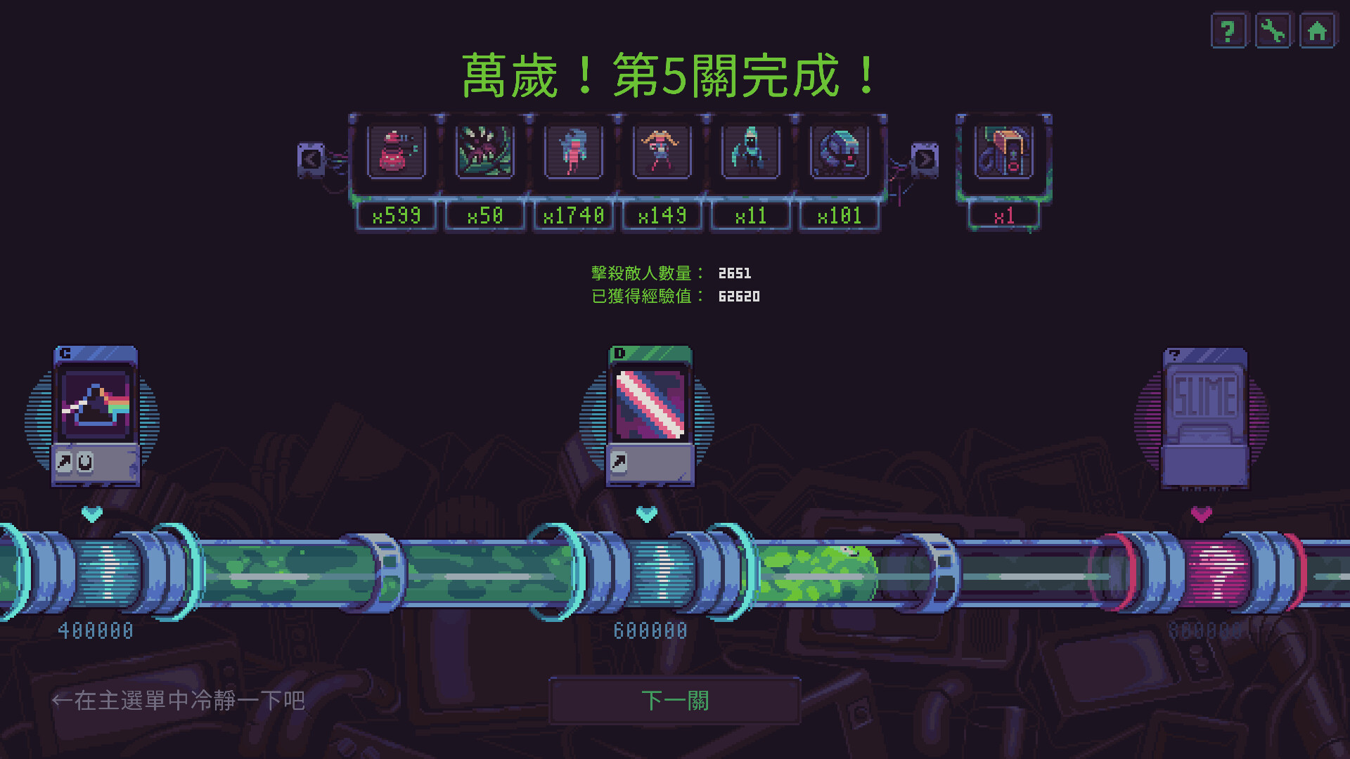 Slime 3K adds strategic depth and more creative experimentation to the survivor-like formula by introducing a deep deckbuilding system. Unlock, upgrade, mix and match your cards to stock up an impressive arsenal of zany weapons and traits. Create the perfect bloodbath loadout for each run!
