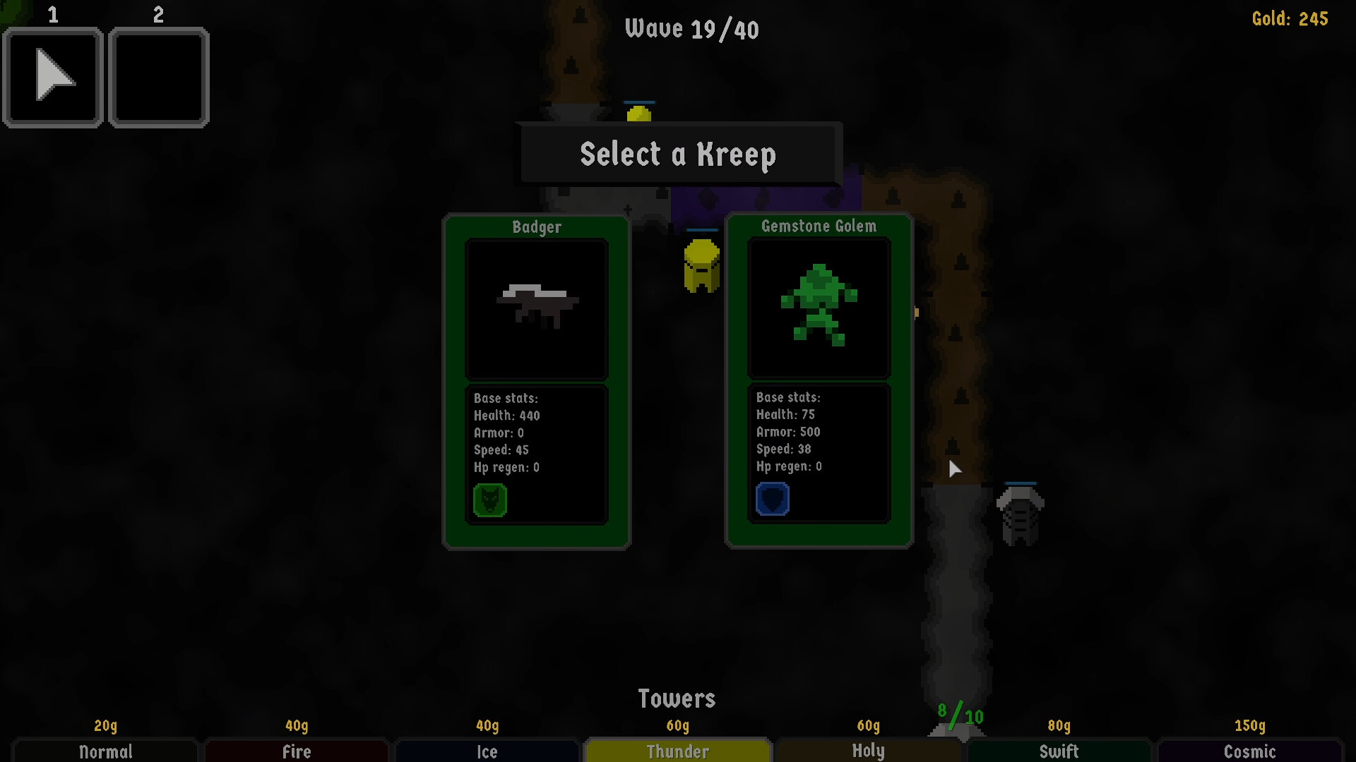 Kreeps is a tower defense game where you choose how your towers and the enemies scale as the game progresses.