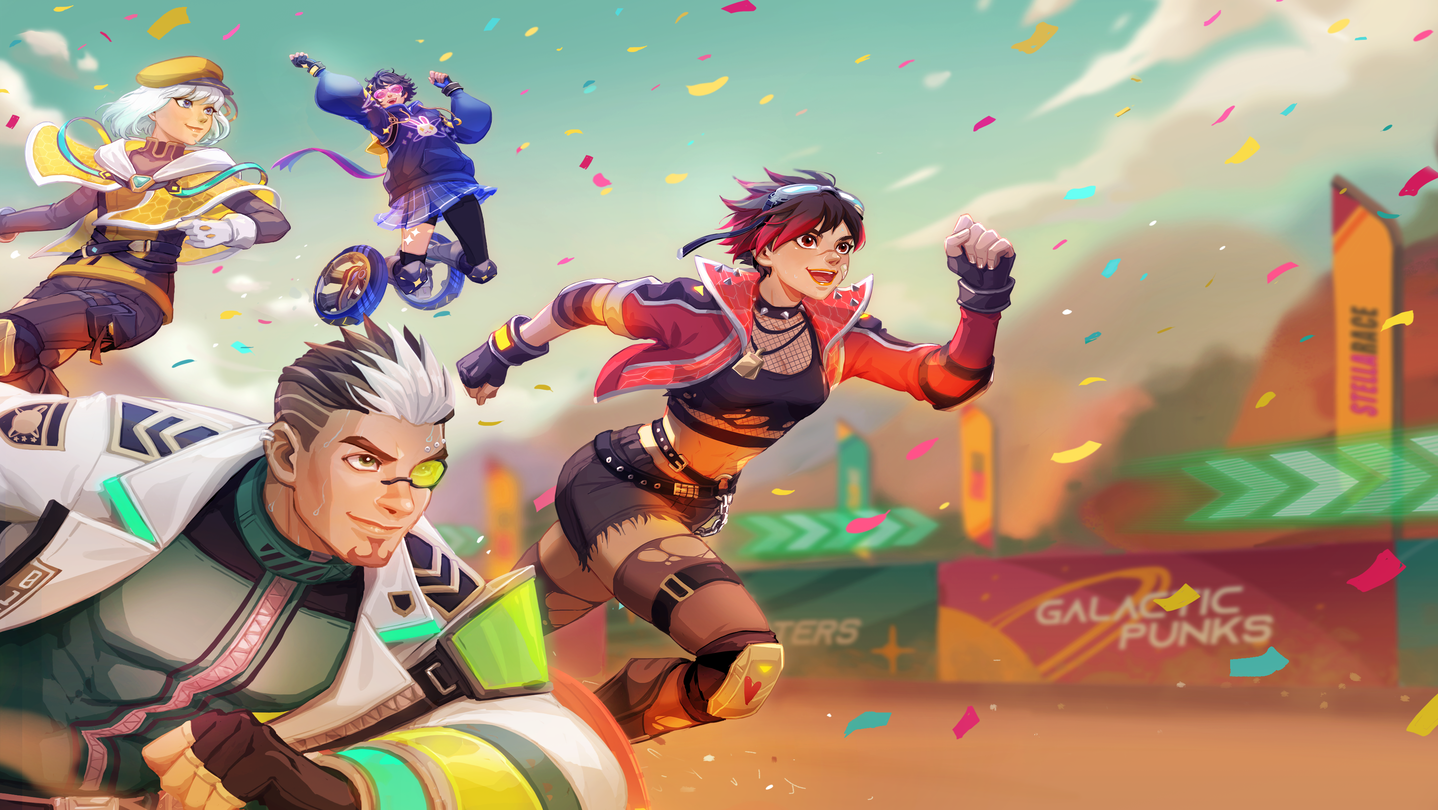 Welcome to Stellarace, the ultimate space roller skating game where players can choose from four different avatars to race through the galaxy, competing against each other to be the fastest skater in the universe!