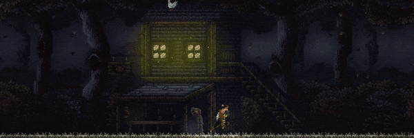 • Hand drawn, simple, and moody pixel art.
