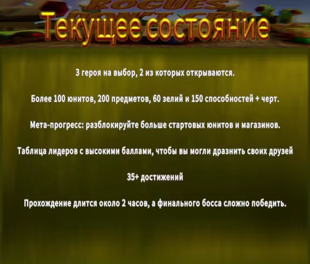 Rogues Don't Cry — это смесь стратегии и рогалика. Выберите героя, наймите юнитов, столкнитесь с суровым процедурно сгенерированным миром с опасными монстрами, улучшите свой город, управляйте мощной армией.