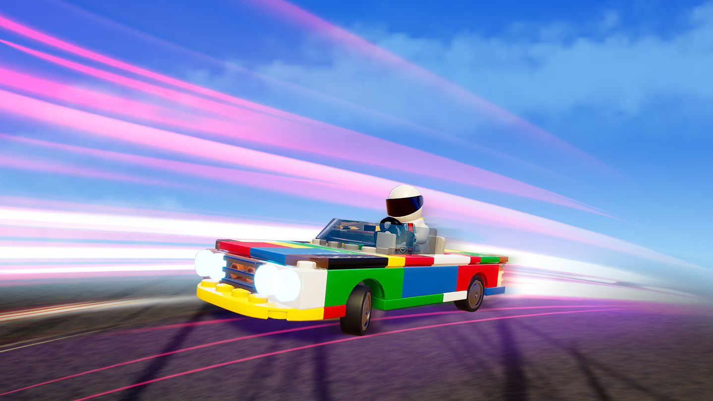Purchase the LEGO® 2K Drive Starter Bundle and take off on your driving adventure with the Da Kar and 500 Coins for use in Unkie's Emporium!