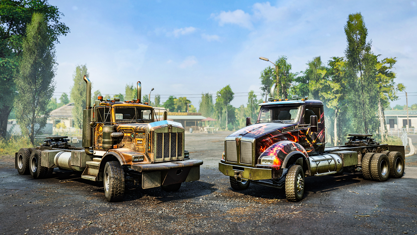 The Kenworth Dual Pack brings two new Kenworth trucks to your SnowRunner garage - the Highway-class T880 and the Heavy Duty-class C500 - as well as one vinyl wrap for each.