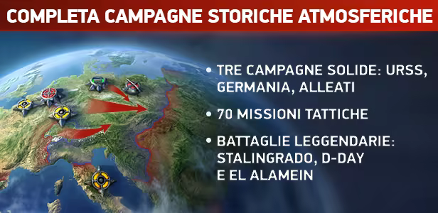Domina sul campo di battaglia in tre campagne storiche atmosferiche che coprono il periodo principale della Seconda Guerra Mondiale: dall'invasione della Polonia nel 1939, alla cattura trionfale di Berlino nel 1945. Scegli quale parte essere nel conflitto - URSS, Asse o Alleati! Prendi il comando dei tuoi soldati e vinci le leggendarie battaglie della Seconda Guerra Mondiale, create sulla base di materiale archivistico su mappe storicamente accurate. I migliori strateghi riceveranno ulteriori premi per missioni condotte perfettamente!