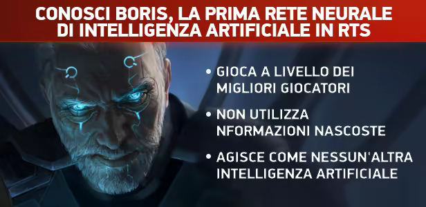 Una macchina di rete neurale di nome Boris gioca a livello del migliore giocatore, pur non utilizzando alcuna informazione nascosta sul nemico. Il generale Boris analizza regolarmente la sessione di gioco e fa previsioni di reti neurali basate sul comportamento nemico. Questo approccio gli consente di pensare a sofisticate contro-strategie e porle in essere. Questo rende Boris tenace e imprevedibile, in modo da poterti stupire mille volte.