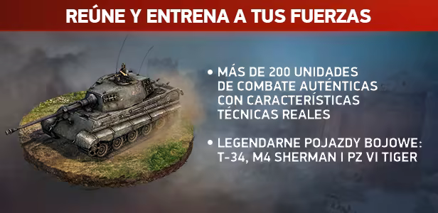Dirigirás más de 200 unidades de combate auténticas hacia la batalla. Todas ellas fueron desarrolladas teniendo en cuenta características técnicas reales. Encontrarás más de 100 modelos de vehículos blindados y cañones autopropulsados, 40 tipos diferentes de infantería y escuadrones de asalto y una variedad de diferentes fortificaciones y defensas. Cada unidad posee características de desempeño reconstruidas en detalle, tales como velocidad de disparo, captura de blindados, campo de visión y otras que te permitirán sentirte en la piel de un verdadero comandante. Reúne y entrena tu ejército y forma tus propias brigadas para completar las misiones.
