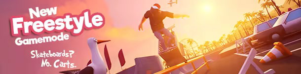 The new Freestyle mode is here to remind you that everything a skateboard can do… a shopping cart does worse. But with much more style. Trace your line, use every ramp and rail, perform trick after trick and rack up points. Each cap collected increases the multiplier: more risks, more style, more glory!