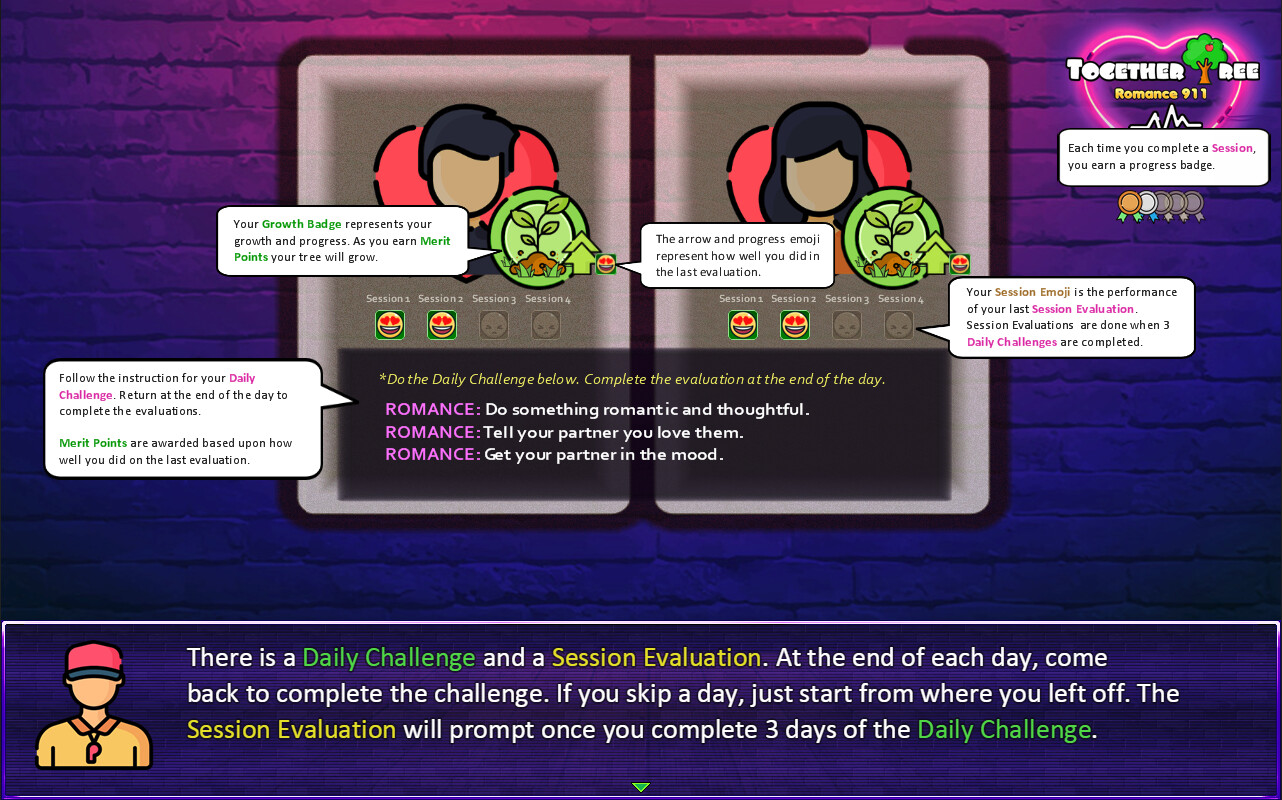 Together Tree: Romance 911 is a relationship application for married couples looking to stimulate love, affection, romance and intimacy in their relationship. Complete daily challenges, complete session evaluations and have a great time rating each other's progress as they rate and review your own.