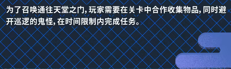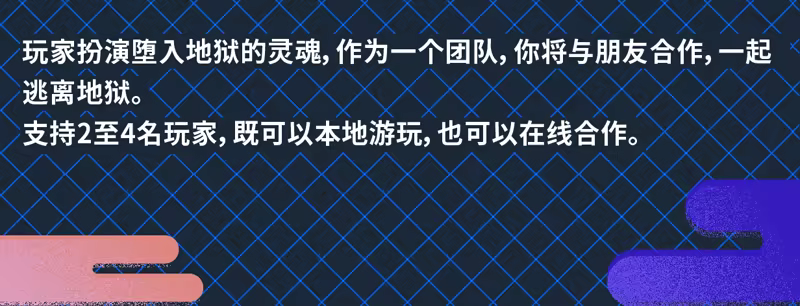 地狱Hell》是一款最多四名玩家参与的合作性动作隐秘游戏,结合了 "标签 "和 "捉迷藏"。 玩家必须齐心协力,避免被游荡在舞台上的恶魔发现,按照命令收集舞台上的各种物品,在规定时间内召唤出大门,并设法逃出监狱