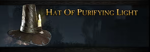 Chapeau de lumière purifiante - Avec deux cierges bénis par les Prêtres du Grand Temple attachés au contour de son large chapeau, une lueur purifiante entoure le Répurgateur lorsqu'il marche à grands pas dans la nuit. « Les justes ne ressentent pas la douleur. Êtes-vous injuste ? » - Victor Saltzpyre