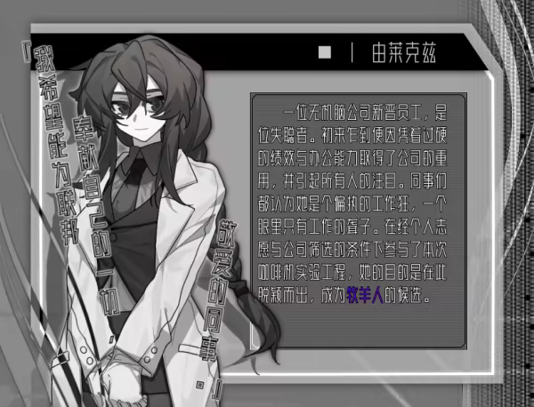 咖啡机实验工程是筛选参加牧羊人工程员工的一项重要测试,所有参与测试的员工均会被投入产生时间流差的特异空间。在接下来的8小时中会有数不清的员工因承受不起时间与空间的扭曲而被迫退出测试,而你,你能坚持到最后吗?