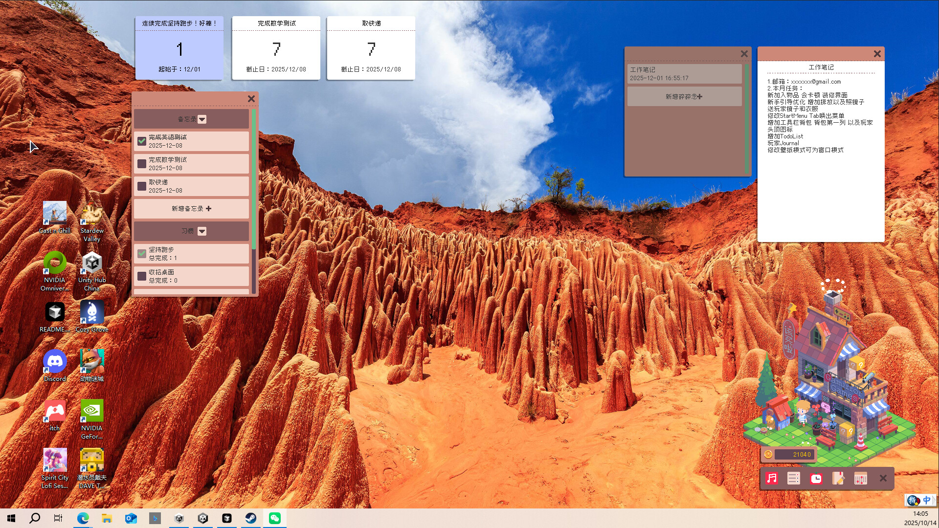 桌宠模式:这个版本新推出的模式!在玩家岛屿上,玩家的小屋就是桌面模式显示的区域,而在NPC的岛屿上,会显示我们精心设计的小场景~