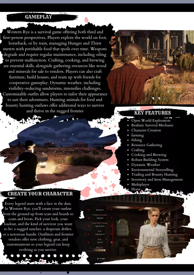 Western Rye is an open world survival crafting adventure game set in the old west American Frontier. Create your dream outlaw! survive the apocalypse, grow crops, build your ranch, endure the weather, fight and forge your legend with friends or alone. In Western Rye, the wild west just got wilder!