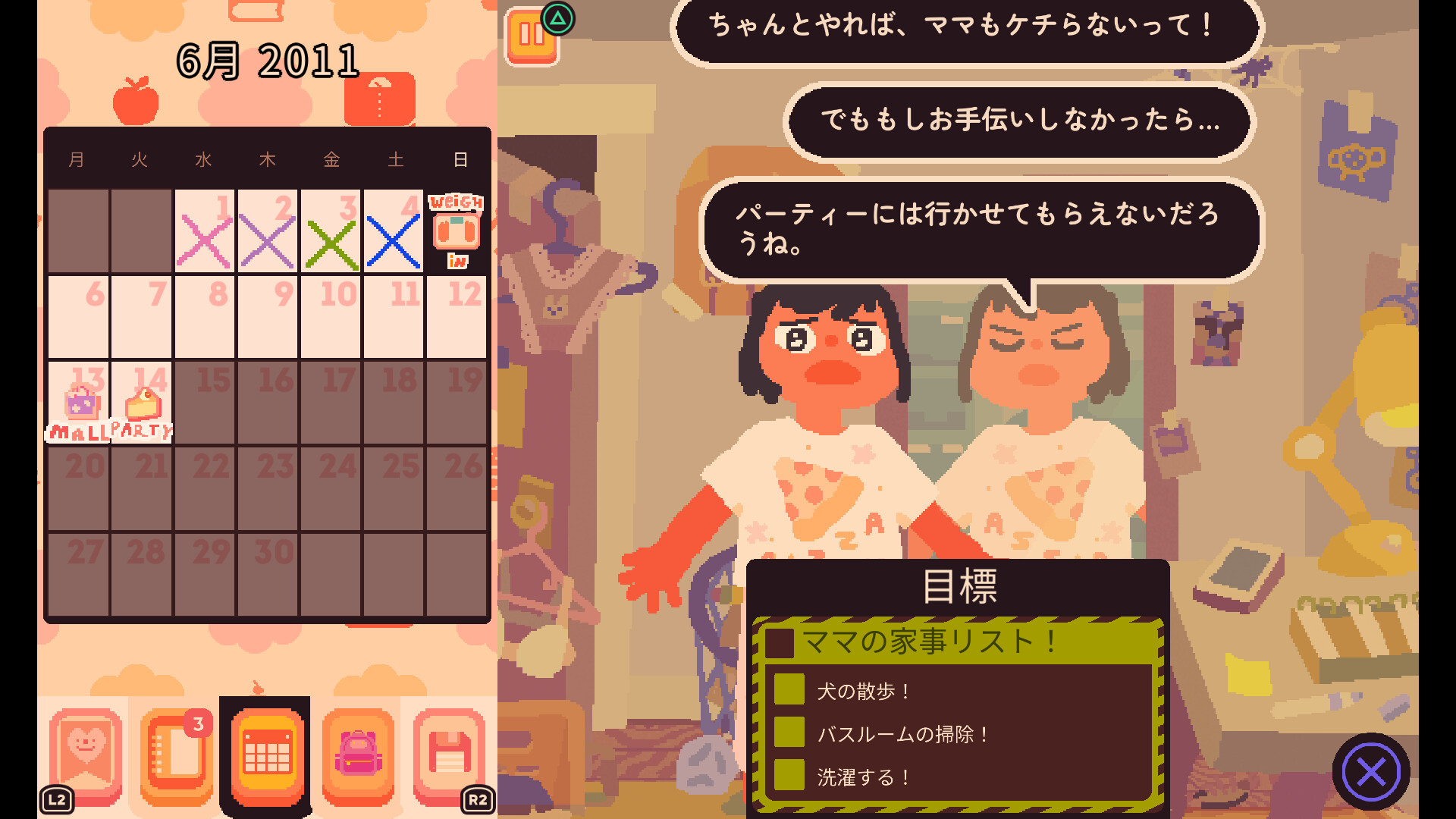 『Consume Me ~私のバカ痩せ青春日記~』では、恋をしながら高校最後の1年を迎える少女・ジェニーとして、日々の選択を重ねていきます。スケジュールを調整して自分を磨き、食事管理のパズルに挑戦し、集中力を保ちながら学業で成果を出し、家事をこなして母親から最低賃金以下のお小遣いを得る——そんな毎日を丁寧に積み重ねていくゲームです!