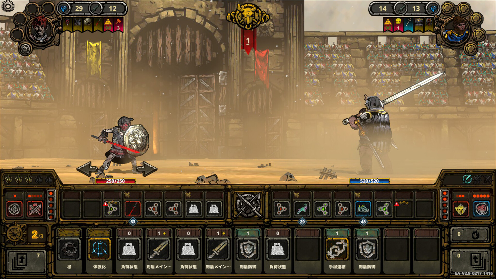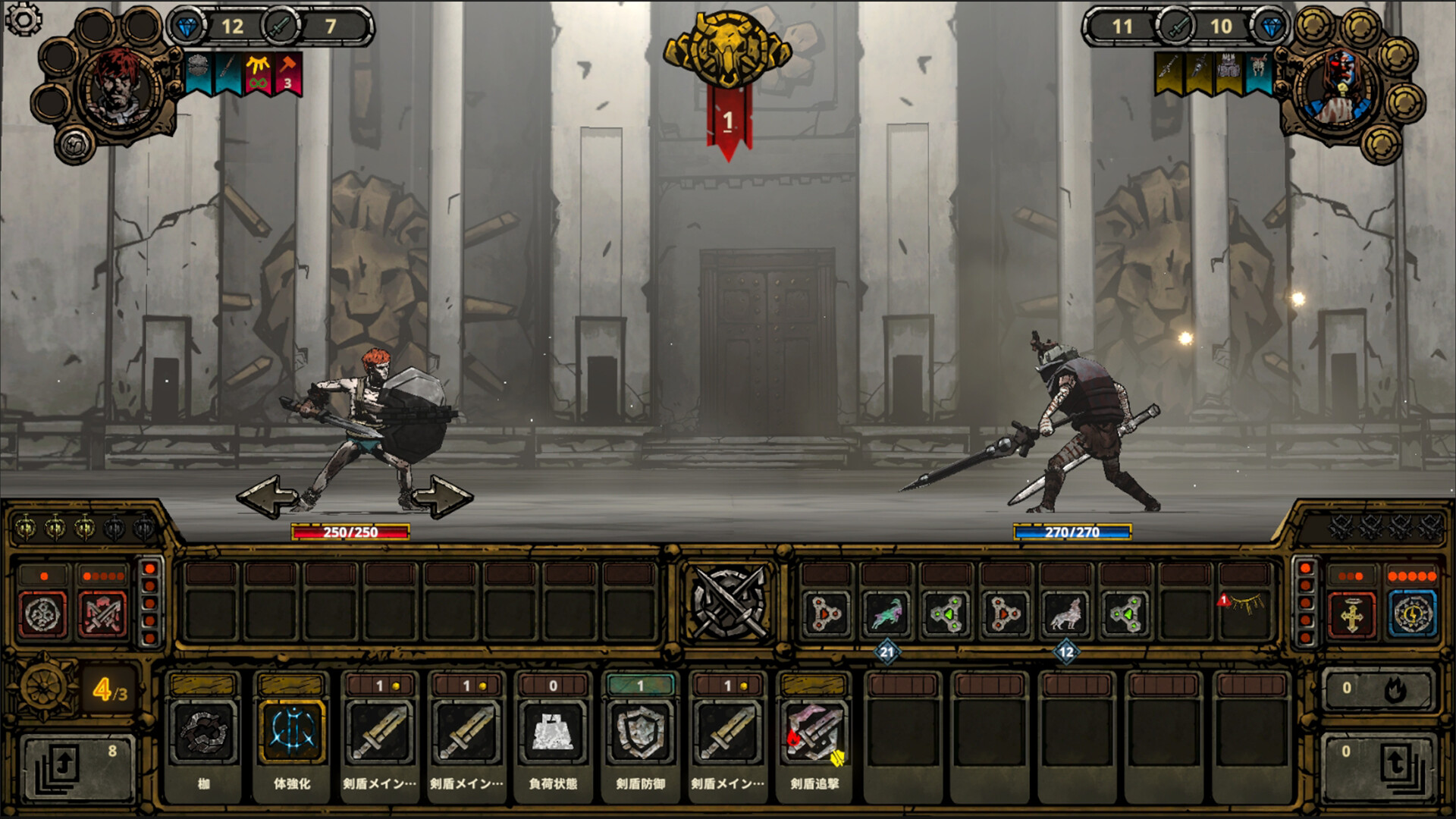 多くの中から一人のグラディエーターを選び、戦いを始めます。それぞれがユニークなスキルを持っています。