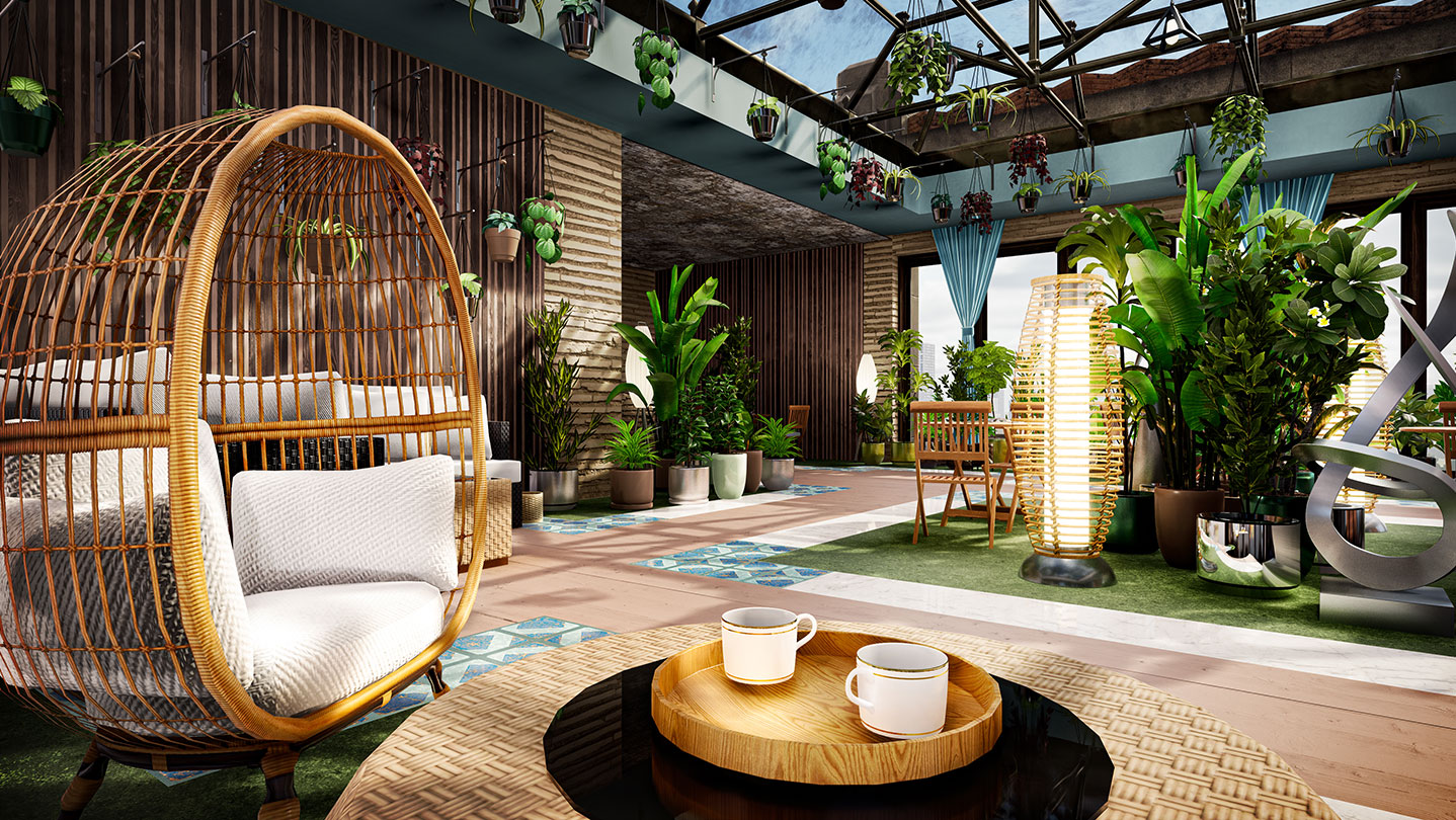 Explore your brand new Indoor Garden, a sanctuary to decorate with vibrant plants and inspiring natural furnishings—a haven for your inner plant enthusiast. Indulge in a delightful collection of nature-inspired furniture and decor, from rustic wooden tables to leaf-patterned curtains, infusing every nook of your hotel with organic charm.
