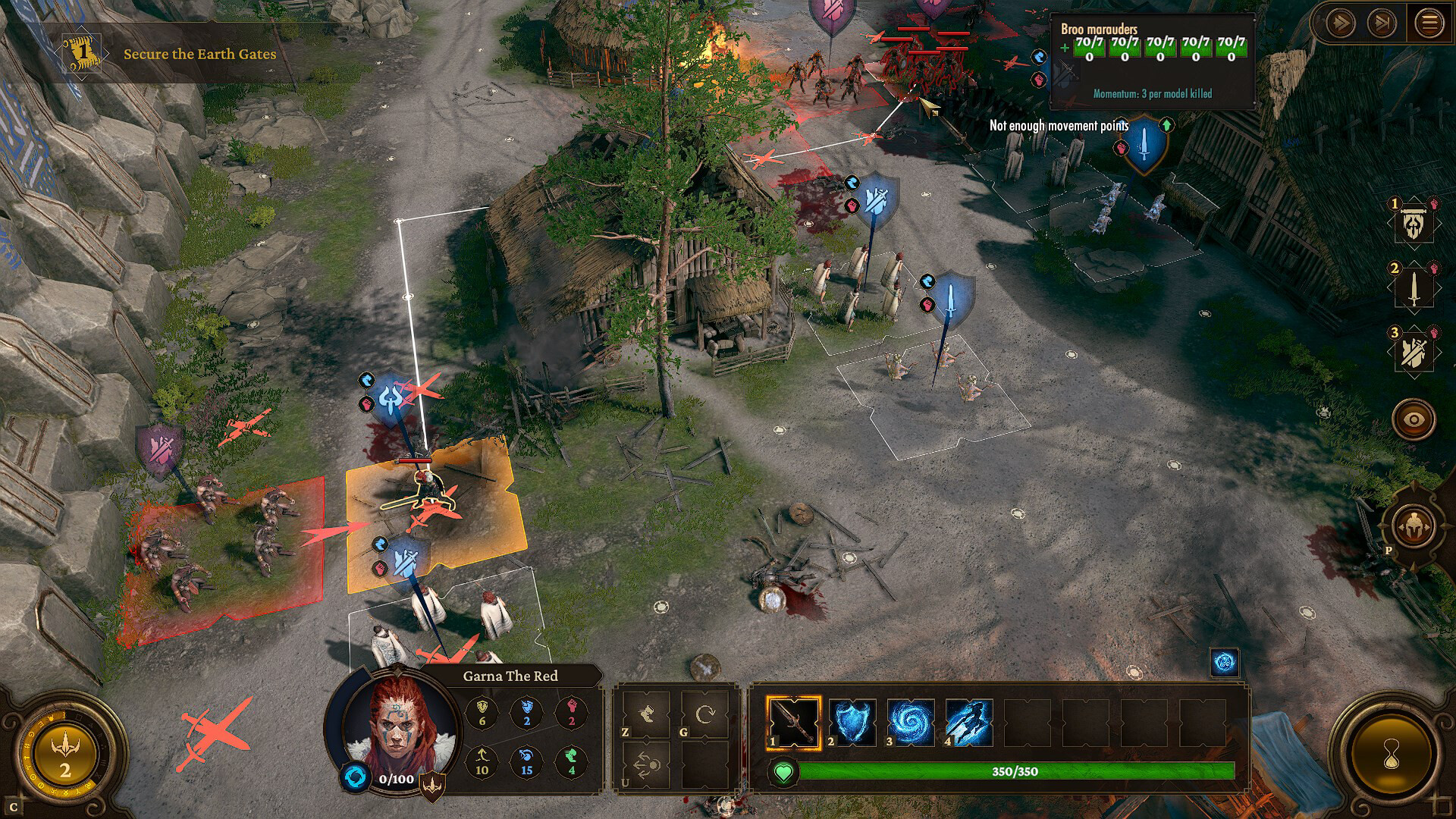 Each unit holds a 'Zone of Control' over nearby tiles, forcing enemies to engage or maneuver around. Action Points (AP) can be used for moves, attacks, or special abilities, with Heroes gaining two AP for advanced tactics like flanking and spellcasting. Spirit, Rune, and Sorcery magic bring powerful abilities, while Sentry Mode allows units to guard areas automatically. Tactical reactions like Opportunity Attacks and counter-attacks make positioning critical, adding layers of strategy to every move.