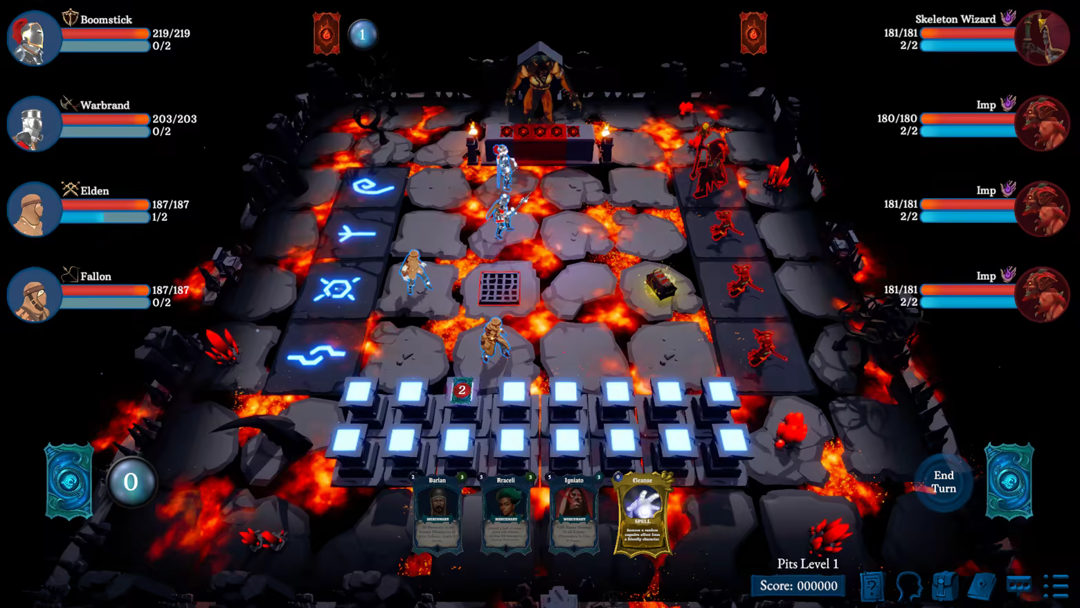 As batalhas acontecem em um campo de batalha baseado em grade, onde posicionamento, tempo e estratégia são tão importantes quanto a mão do destino que você possui.