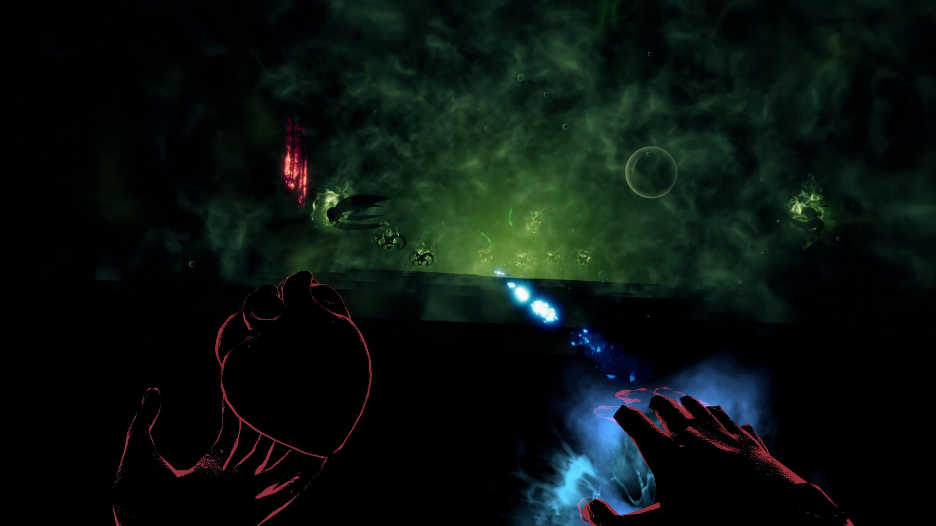 It Consumes is an FPS survivors game that plays like a combination of Devil Daggers and Vampire Survivors, but with an additional twist — to see you must use your pulse to temporarily reveal your surroundings.
