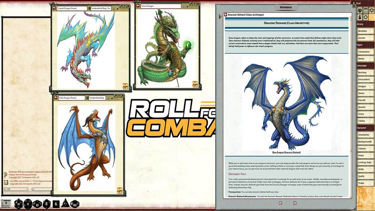 Requires: The free Fantasy Grounds virtual tabletop (VTT) software and the included Pathfinder 2.0 ruleset.