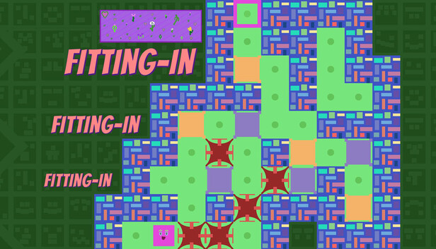 Fitting-In is a single player puzzle game where you perform movement combos to jump over, through, and inside obstacles! There are walls, pause blocks, break blocks, and move blocks that all require creativity to overcome!