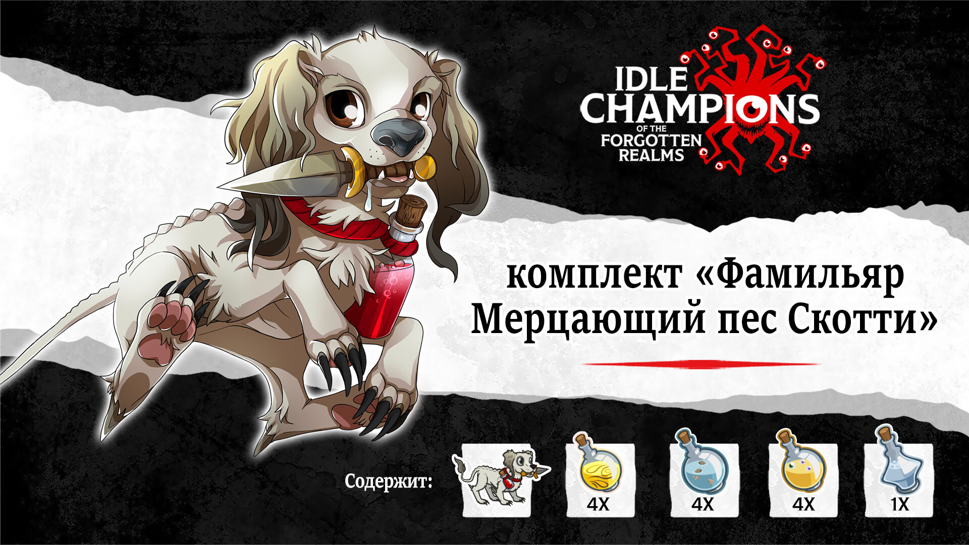 Внимание: комплект «Фамильяр Мерцающий пес Скотти» больше не доступна в магазине Steam.