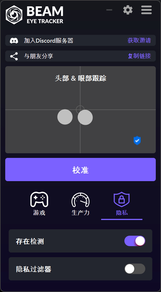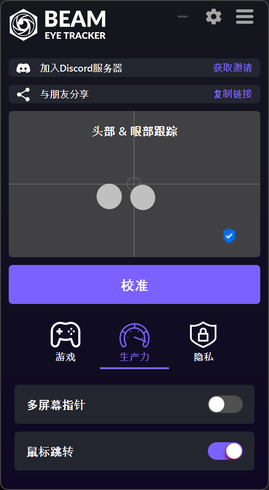 Beam眼动追踪器在支持更高帧率的网络摄像头上实现60FPS+追踪,提供流畅的追踪体验并减少延迟。确保将性能模式设置为"高性能"以获得最佳体验。