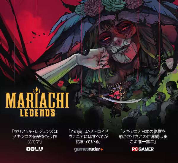 『マリアッチ・レジェンズ』は、メキシコを舞台にした残酷でピクセルアートの戦闘重視型メトロイドヴァニアです。プレイヤーは探偵パブロ・クルスとして、死神そのものと契約を交わします。彼女はパブロに強大な「ラ・ソンブラ」へと変身する力を授け、故郷を脅かす犯罪者たちに立ち向かう力を与えました。その代償として、パブロはマドレ・カトリナに永遠に手に入らなかったもの――彼女の力を拒み、不死となった男――を連れてくることを誓います。